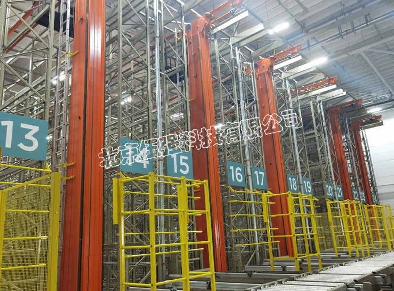 自动化立体库主要用于整托盘收货入库、整托盘存储、整托盘出库、整箱出库在线拣选等。立体库区域占比面积约5800平米,单个消防分区2900平米。该区域共设计12台单深位堆垛机,共19536个托盘货位。